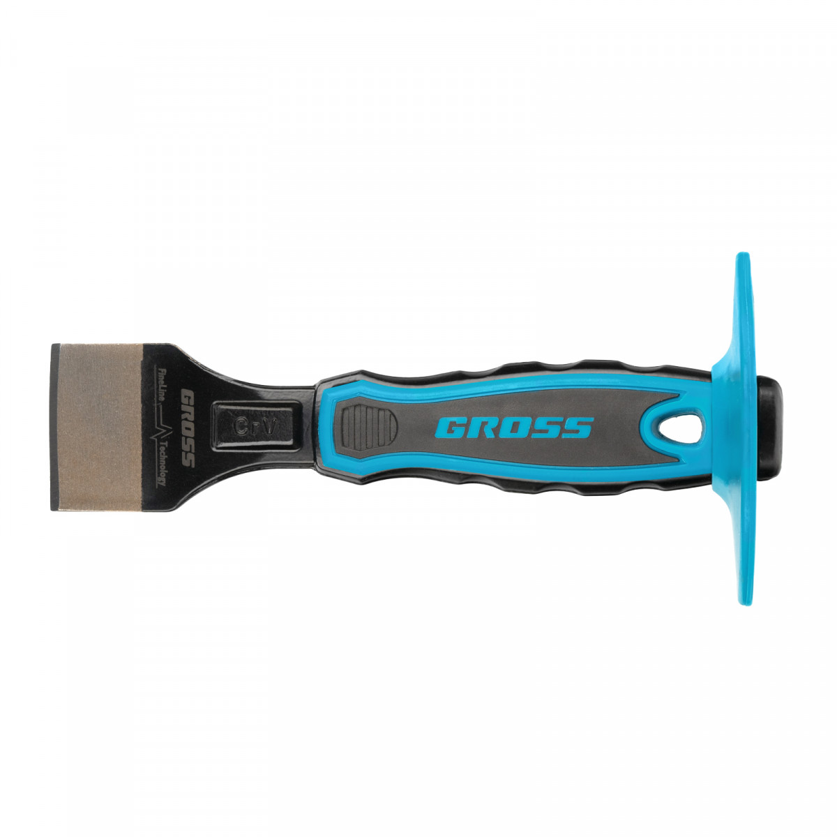 Зубило-конопатка Gross 18714 размером 200 х 45 мм-3/4 дюйма — ручной режущий инструмент, работающий под ударным воздействием молотка или киянки. Рассчитано на работу с деревянным срубом, плиткой, камнем, кирпичом. Используется для запечатывания швов, монтажа утеплителя в деревянных постройках, демонтажа облицовки и решения других задач.